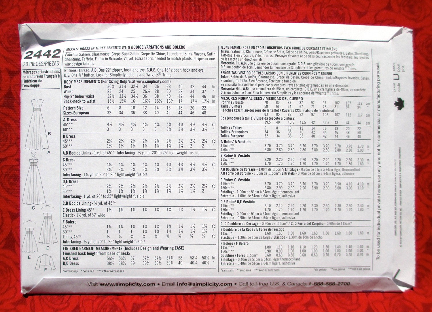 Simplicity Sewing Pattern 2442 Dress Bolero Jacket Formal Etsy Osterreich